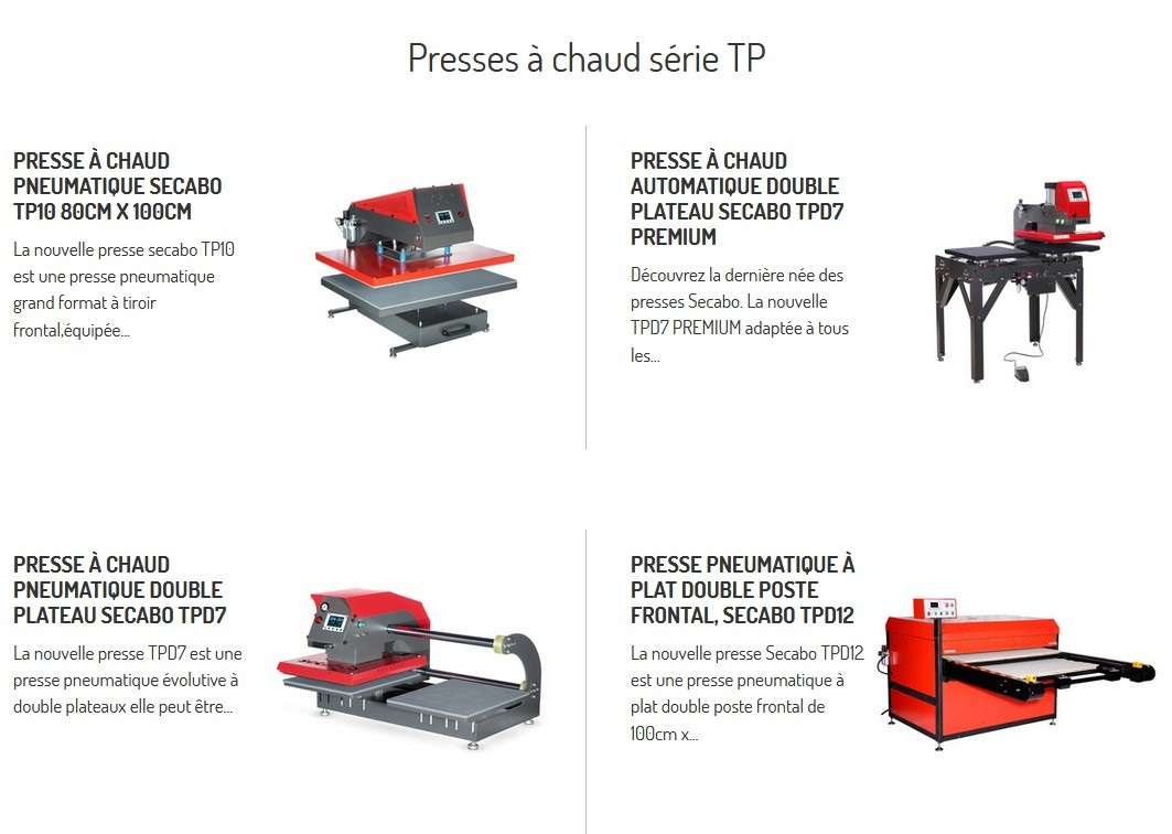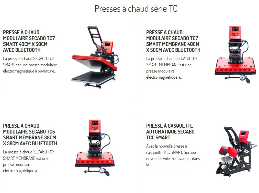 Appareils et machines de qualité pour les techniques de marquage par transfert à chaud sur textiles et autres supports.